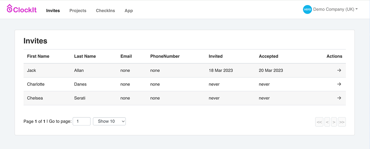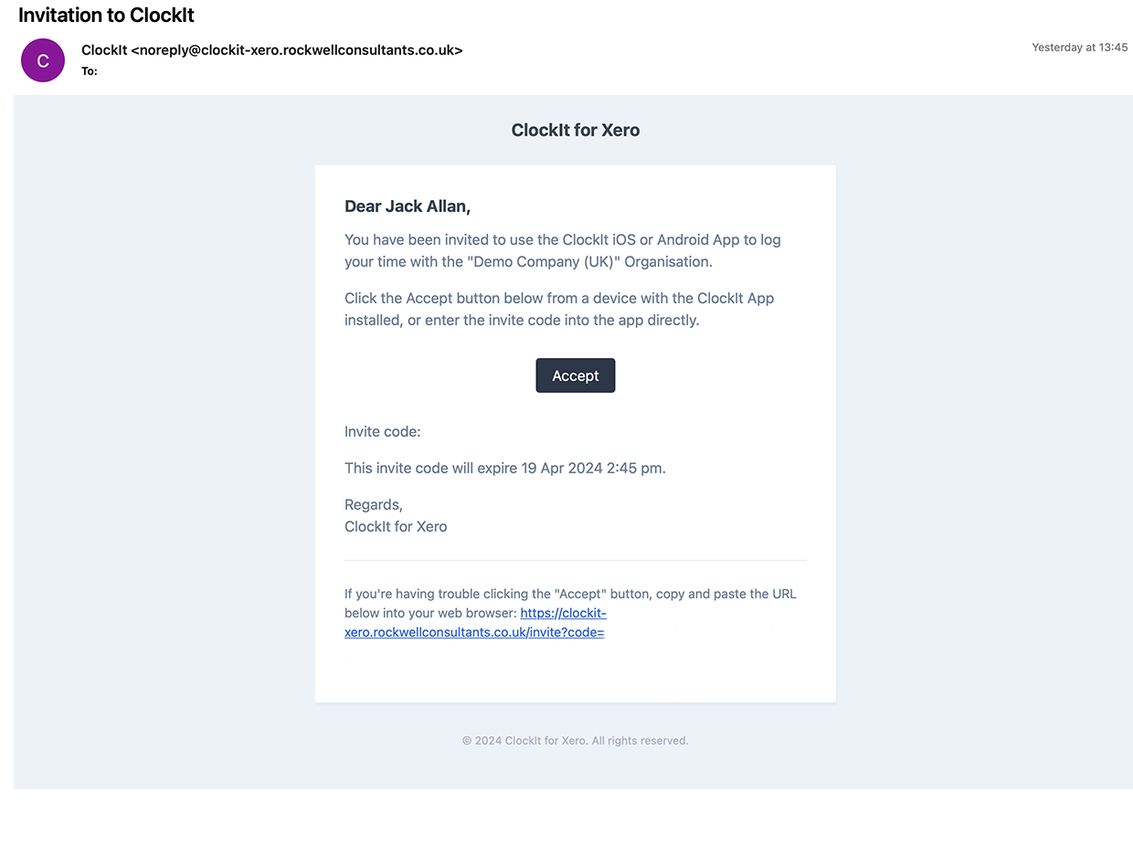 To start using ClockIt simply accept an invite to link the app to your employer’s job sites. Once accepted you can start logging time. All of which is viewable in the simple to use interface linked directly to Xero accounts.