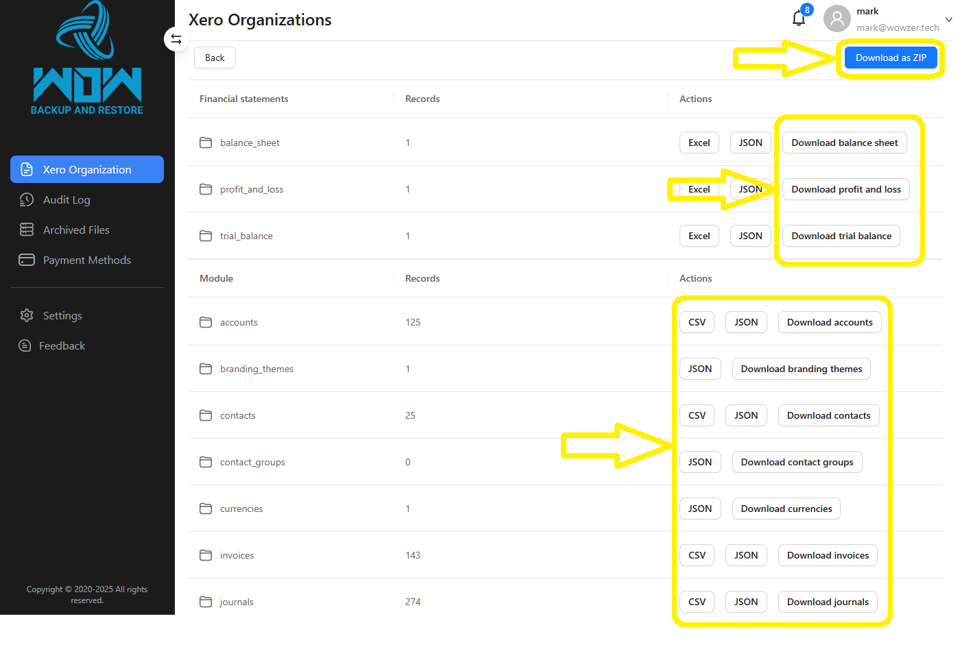 WOWzer Backup and Restore + Xero