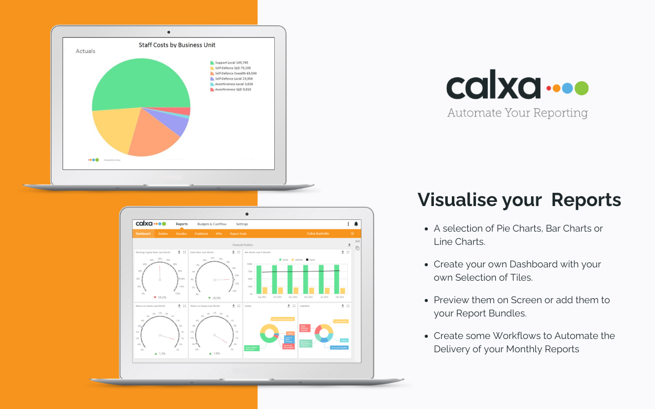 Calxa helps businesses, not-for-profits and accounting firms. It connects seamlessly with your Xero, syncing your data daily and automating your financial reports into your inbox. Create insightful management reports.