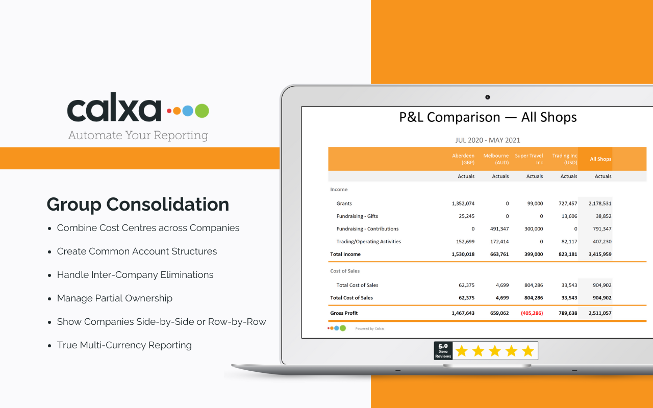 Group Consolidations Consolidate multiple Xero entities in any currency to deliver cash flow forecasts and comparison reports.