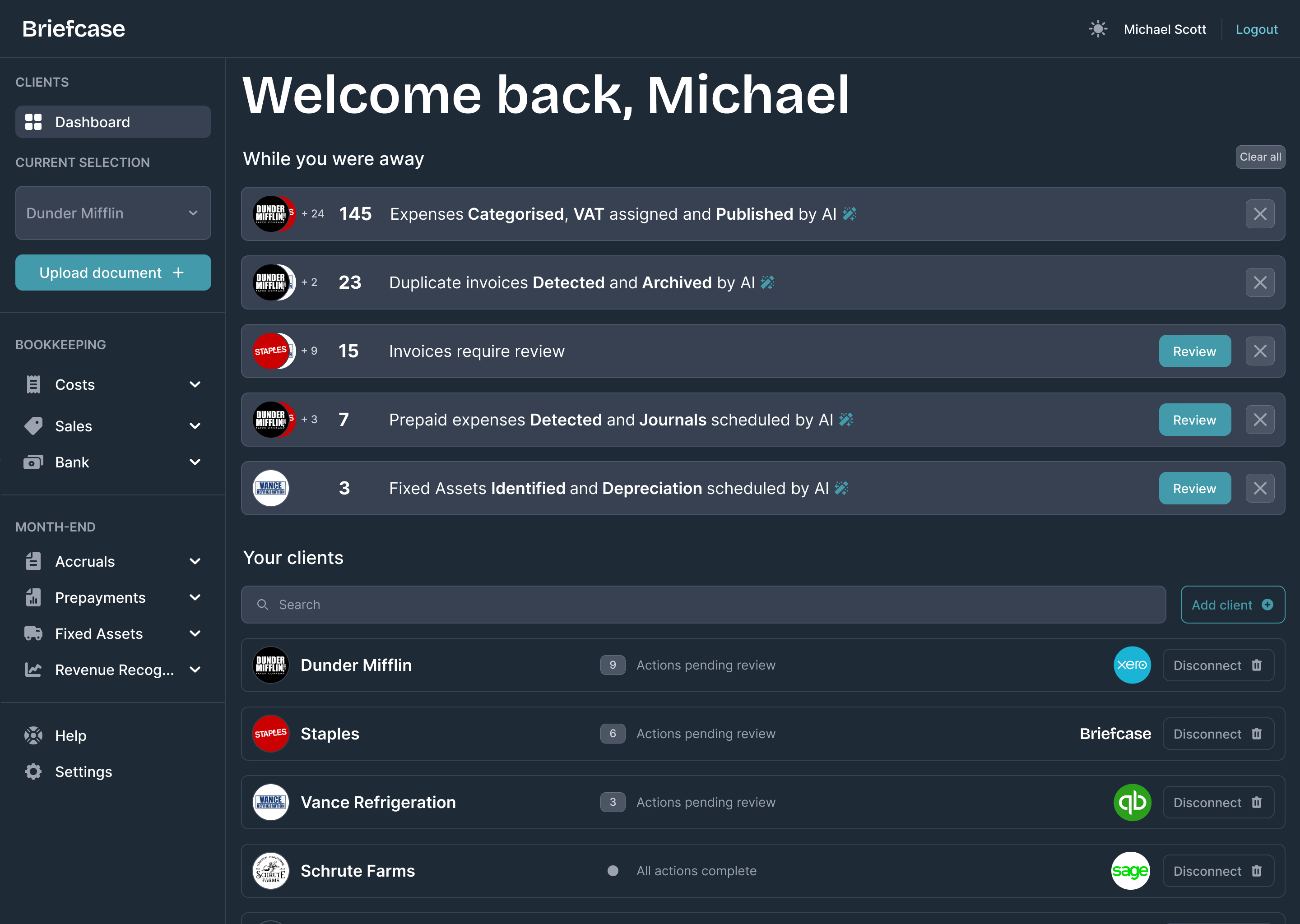 Briefcase's two-way integration with Xero ensures that the AI is always learning from accurate client data.