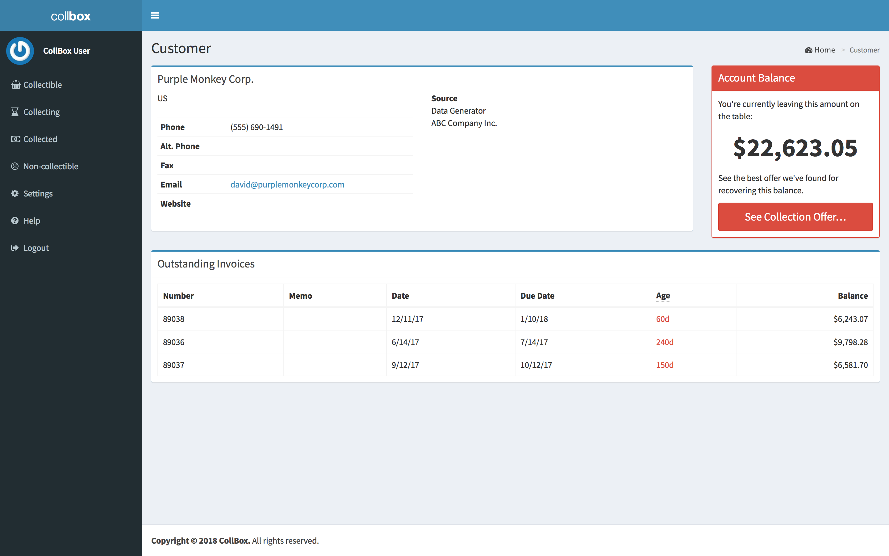 Regardless of how late an unpaid invoice is, CollBox has effective A/R solutions to get you paid quickly for your hard work.