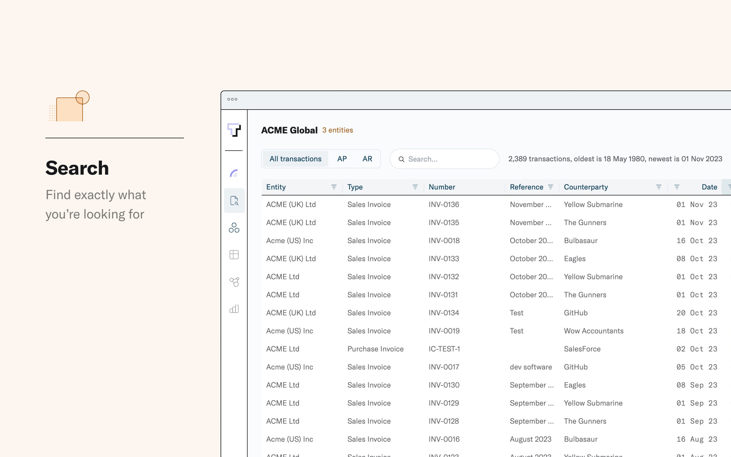 Search every entity at once and view all your accounting data in one place